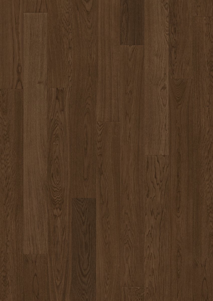 Deska klasyczna Dąb Ciemny – wyjątkową podłoga od renomowanego producenta ETP Floor. To propozycja dla klientów ceniących sobie wyrafinowaną estetykę, głębię koloru oraz naturalne i trwałe wykończenie, które nada wnętrzom prestiżowy, a jednocześnie przytulny charakter. Dąb Ciemny zachwyca swoim niezwykle głębokim, niemal hebanowym odcieniem brązu, balansującym na granicy czerni. Ta intrygująca barwa to efekt starannie dopracowanego procesu barwienia drewna, który wnika w strukturę dębu, wydobywając jego naturalne piękno w nowym, zaskakującym wymiarze. Deski są wykończone wysokiej jakości woskiem olejnym UV. To wykończenie nie tylko doskonale zabezpiecza drewno, ale przede wszystkim podkreśla jego naturalną fakturę i ciepło, nadając podłodze szlachetny, matowy wygląd oraz przyjemną w dotyku powierzchnię. Delikatne szczotkowanie powierzchni subtelnie uwydatnia naturalne usłojenie, dodając deskom autentyczności i trójwymiarowego charakteru. Klasa Select (najwyższa selekcja) gwarantuje spójny i harmonijny wygląd, z minimalną liczbą sęków, pozwalając w pełni podziwiać unikalną głębię koloru i rysunek drewna.