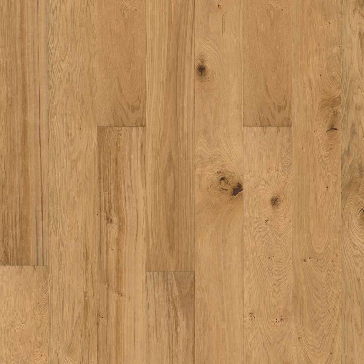 Naturalne wykończenie lakierem tej dębowej podłogi jednorzędowej z kolekcji Avanti pozwala desce na występujące wariacje kolorystyczne drewna, od jasnego do ciemnobrązowego. Może pojawić się biel. Produkt zawiera duże szmery oraz czarne sęki i pęknięcia. Sęki i pęknięcia będą występować w różnych rozmiarach na każdej z desek.
