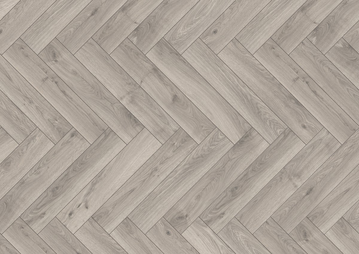 Podłoga laminowana w kolorze Dąb Atelier z kolekcji Herringbone Collection producenta Ter Hürne to eleganckie i designerskie rozwiązanie, które wprowadza do wnętrz niepowtarzalny charakter. Inspirowana klasycznym wzorem jodełki, charakteryzuje się wyrazistą strukturą drewna oraz zimno-brązową kolorystyką, tworząc niepowtarzalny, loftowy klimat.