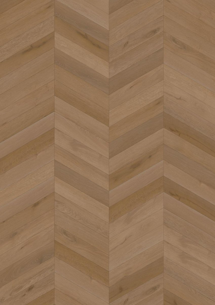 1. Stylowy wzór chevron: Intention wyróżnia się wyrazistym wzorem chevron, który dodaje dynamiki i głębi każdemu pomieszczeniu. Ten klasyczny układ w kształcie strzałek łączy nowoczesność z tradycją, co sprawia, że podłoga doskonale komponuje się w różnych stylach aranżacyjnych – od minimalistycznych po bardziej eklektyczne.