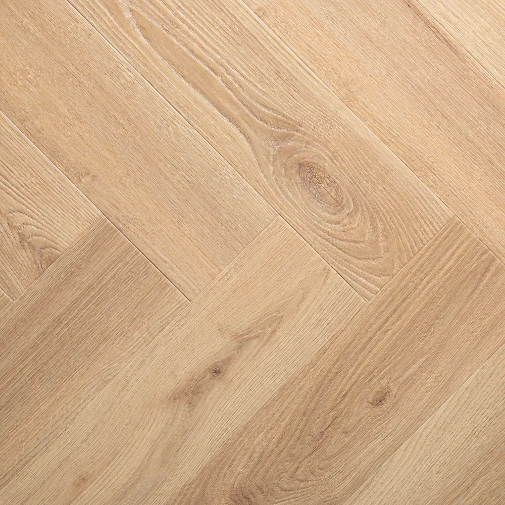 VinylTechLab Louvre z kolekcji Royal Castle to stylowa podłoga winylowa w klasycznym układzie jodełki, inspirowana naturalnym drewnem dębowym o jasnej, delikatnie kremowej tonacji. Dekor cechuje się wyraźnym, ale miękko zaznaczonym usłojeniem drewna i subtelnymi przejściami odcieni, które nadają powierzchni świeżości, harmonii i naturalnego charakteru.