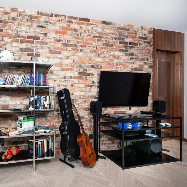 Montaż podłogi w budynku mieszkalnym, Dąb Brine kl. Standard – układany w jodełkę francuską. Deska wykończona olejowoskiem, szczotkowana, fazowana czterostronnie, dodatkowo podłoga została zabezpieczona środkiem konserwującym od Osmo 3029. Między gresem, a podłogą drewnianą zostały wykonane dylatacje w formie silikonu chemią firmy Beko.